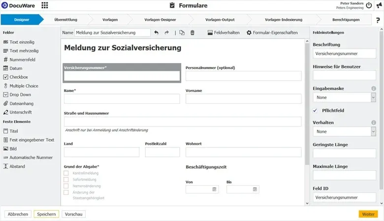 Ein einfacher Umgang mit Daten ist nur in strukturierter Form sinnvoll möglich. Dazu stellt DocuWare mit Forms ein Modul zur Erstellung von modernen Webformularen zur Verfügung.